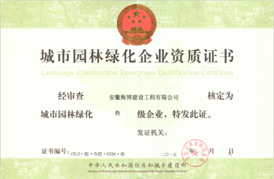 2015年2月17日,值此歲末,新春佳節(jié)之際,又一好消息傳來,我公司申報的“城市園林綠化叁級資質(zhì)”獲批。 我公司自成立以來,一直以施工板塊為主營發(fā)展方向,當(dāng)然在此領(lǐng)域也已然取得了...