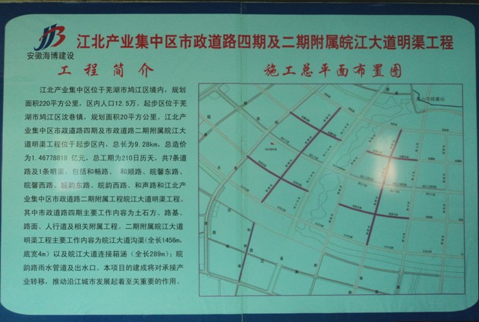 安徽省江北產(chǎn)業(yè)集中區(qū)四期市政道路及二期附屬皖江大道明渠工程位于蕪湖市鳩江區(qū)沈巷鎮(zhèn),工程主要內容包括7條道路及1條明渠;道路總長9.28km,分別為和聲路、和暢路、和順路、皖韻東路、皖韻西路、皖馨東...