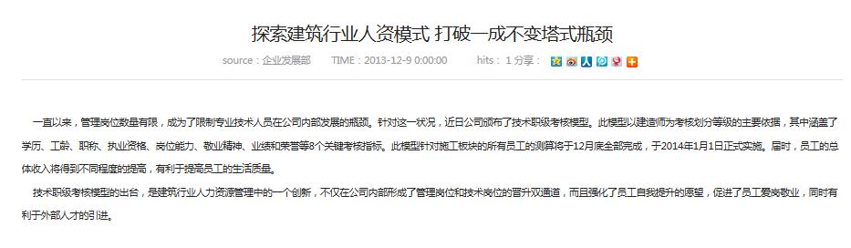 一直以來,管理崗位數(shù)量有限,成為了限制專業(yè)技術人員在公司內部發(fā)展的瓶頸。針對這一狀況,近日公司頒布了技術職級考核模型。此模型以建造師為考核劃分等級的主要依據(jù),其中涵蓋了學歷、工齡、職稱、執(zhí)業(yè)...