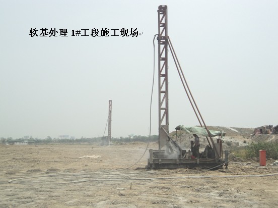 在軟基處理工段,就有四臺(tái)大功率打樁機(jī)械在同時(shí)施工。在施工電源無(wú)法保證多臺(tái)機(jī)械同時(shí)施工的困難局面下,新增了兩臺(tái)150KW大功率發(fā)電機(jī)進(jìn)行發(fā)電,做到24小時(shí)歇人不停機(jī)連續(xù)施工,大大提高了施工進(jìn)度,可以縮短近兩倍工期。