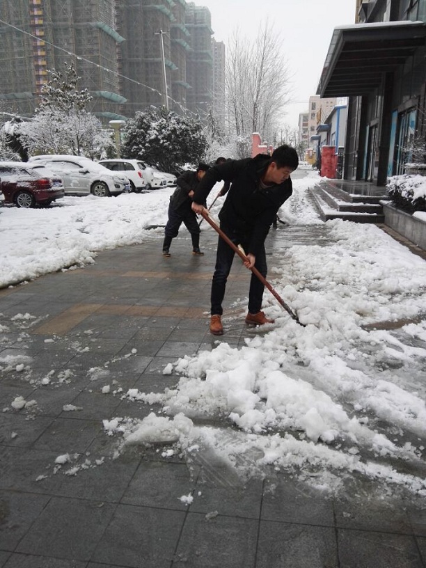 5日早晨,管理公司張總、物業(yè)部孔經(jīng)理親自組織本版塊成員采取鐵鍬鏟雪、掃帚掃雪、水管沖雪等方式為大家開辟道路。在白雪皚皚的清晨,銀裝素裹的產(chǎn)業(yè)園中,鐵鍬與掃帚的勞作聲,似乎燃起了大家內(nèi)心的火熱,吸引著更多的聯(lián)海同仁自發(fā)的參與其中,感謝這些可愛的聯(lián)海人,讓我們?yōu)檫@些“開路者”點贊!