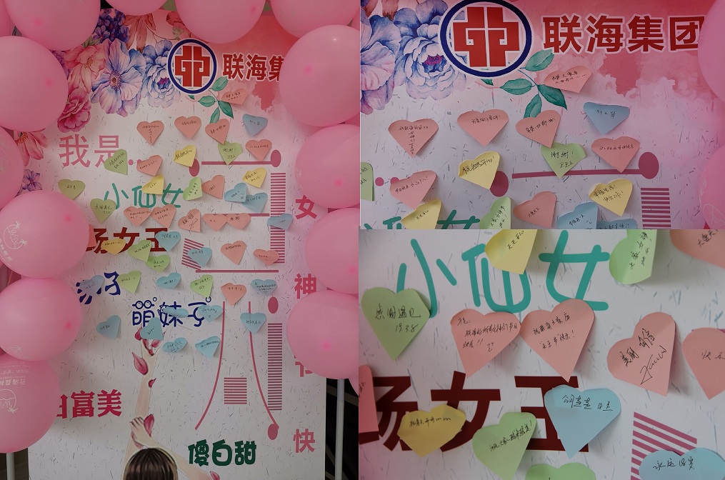 “小驚喜”過后,女神們紛紛在海報上貼上了可愛的標簽及祝福語:小仙女,萌妹子,白富美,職場女王,健康生活、快樂工作,聯海集團越來越好,集團發(fā)展蒸蒸日上等。一張張愛心標簽充分展現了自己的獨特風貌和對集團的美好祝福。
