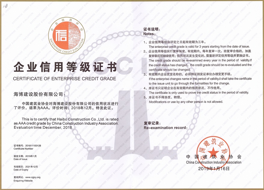 近期,中國(guó)建筑業(yè)協(xié)會(huì)通報(bào)表彰了2018年度全國(guó)建筑業(yè) AAA 級(jí)信用企業(yè),并頒發(fā)了榮譽(yù)證書(shū)。我司信用等級(jí)被評(píng)定為“AAA”級(jí),這是繼中華人民共和國(guó)水利部、中國(guó)施工企業(yè)管理協(xié)會(huì)給予評(píng)定的“AAA”級(jí)之后,榮獲的第三項(xiàng)國(guó)家主管行業(yè)協(xié)會(huì)頒發(fā)的信用等級(jí)證書(shū)。