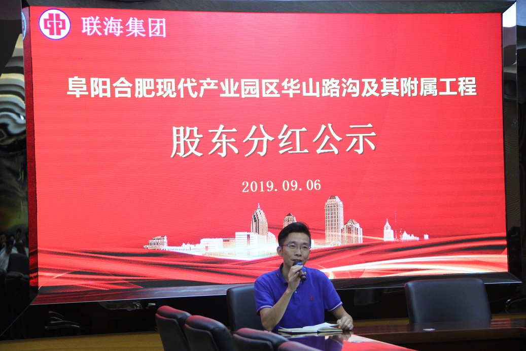 9月6日下午,聯(lián)海大廈5樓會議室隆重召開了“華山路溝及其附屬工程項目分紅會”,集團主管領(lǐng)導(dǎo)、項目部主要管理人員、全體項目股東及部分施工板塊其他人員參加了本次分紅會。