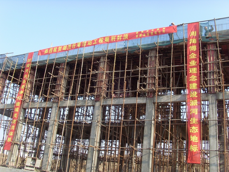 2008年12月18日上午10時(shí)58分,胡灣圩排澇站工地現(xiàn)場鞭炮齊鳴、煙花齊放。胡灣圩排澇站工程主體結(jié)構(gòu)順利封頂。胡灣圩排澇站工程是肥西縣打造“生態(tài)肥西”防洪治污綜合治理工程的重要組成部分,是城關(guān)防洪排澇的骨干工程。該工程于2008年5月破土動工,在縣委、縣政府、縣水務(wù)局及相關(guān)單位的關(guān)心支持下,在建設(shè)、設(shè)計(jì)、監(jiān)理、施工單位的共同努力下,截至目前,該工程已完成總工程量的73.5%,明年汛期,新機(jī)組的轟鳴將為城關(guān)居民提供更加安全的保護(hù)屏障。