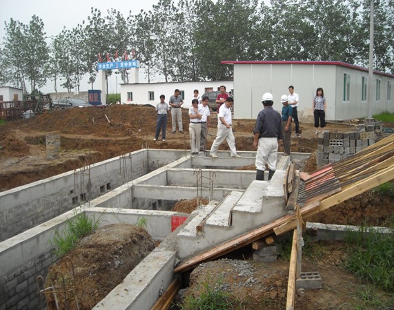 我公司承建的合肥市蜀山區(qū)南崗鎮(zhèn)敬老院工程位于南崗鎮(zhèn)梁墩村,占地面積30畝;工程分二期建設(shè),一期工程建筑面積5384平方米,工程合同價(jià)490萬元;該工程已于7月初開工,目前1#框架樓基礎(chǔ)已通過聯(lián)合驗(yàn)收,3#及4#磚混樓正在基礎(chǔ)條形梁立模板,5#及6#磚混樓基礎(chǔ)也分別通過聯(lián)合驗(yàn)收,現(xiàn)正進(jìn)行基礎(chǔ)回填土和組織上部結(jié)構(gòu)的施工。